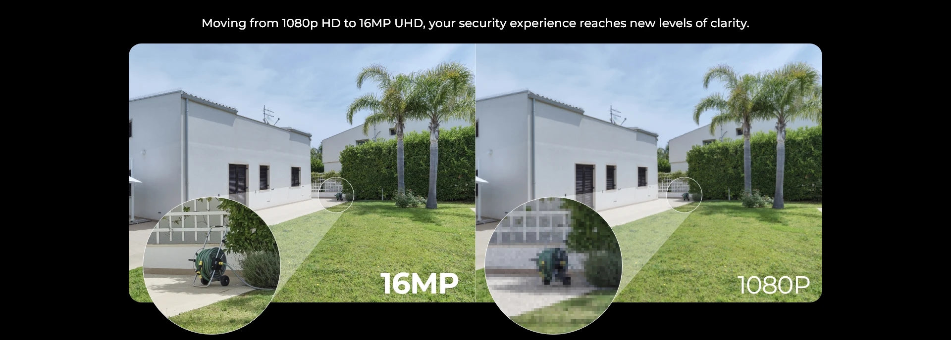 Featuring two 4K image sensors, this dual-lens camera brings groundbreaking 16MP UHD clarity to you, ensuring no small detail goes unnoticed. Experience vivid imaging, even when monitoring a car passing by your front yard.