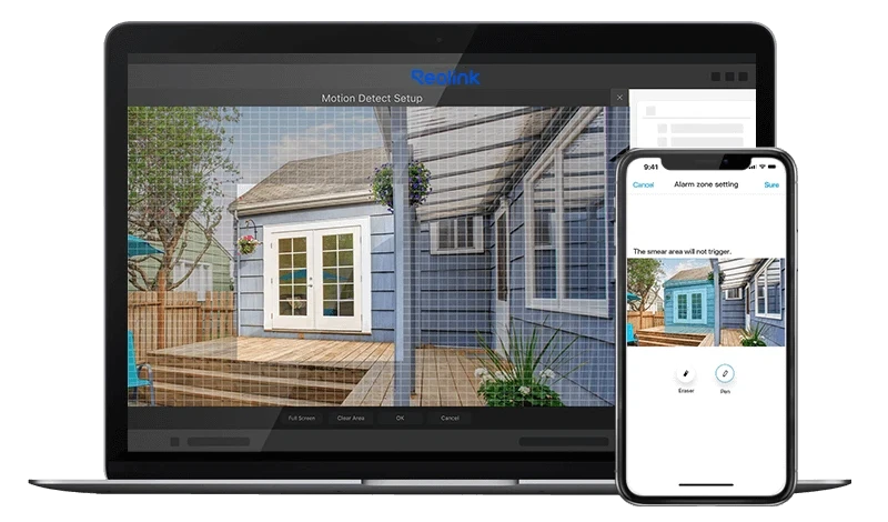 Customized Motion ZoneYour privacy is highly valued. You can freely customize the motion zone by masking out the area where you don't want the camera to detect motions.