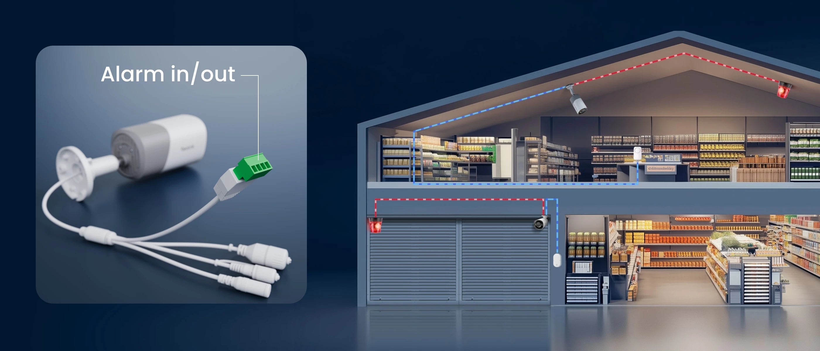 Reolink RP-PCB8MZ features in/out alarm ports that enable connection to external input devices such as sensors and magnetic contacts, and output devices such as sirens and strobe lights. This arming feature allows you to create and customise your own alarm linkage system, perfect for standalone setups or projects where the NVR lacks I/O support.