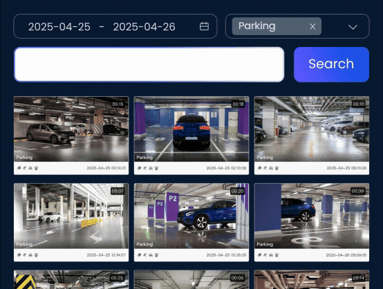 Input descriptive keywords (e.g. "person wearing white clothes", "yellow dog") to find specific video clips in locally saved triggered recordings. Filter out irrelevant clips and pinpoint the target alarm event in no time.