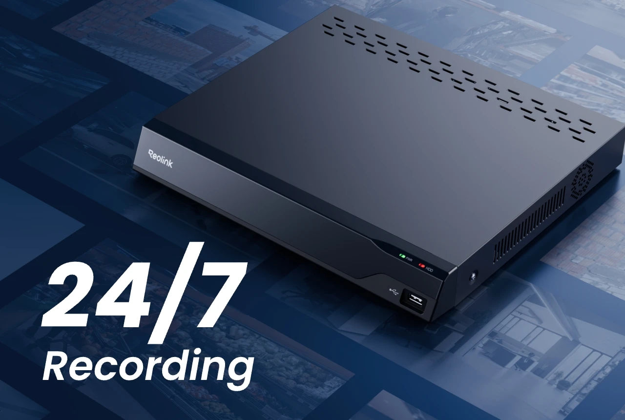 Reolink NVR offers a reliable and high-capacity storage solution for small businesses security, enabling 24/7 continuous recording across multiple channels.