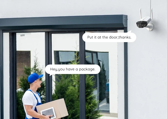 Powered by an advanced stitching algorithm, this dual-lens camera presents an 180° ultra-wide view for all-round surveillance with minimal distortion and no blind spots. Perfect for monitoring spacious rooms, driveways, or large outdoor areas—all with a single camera.