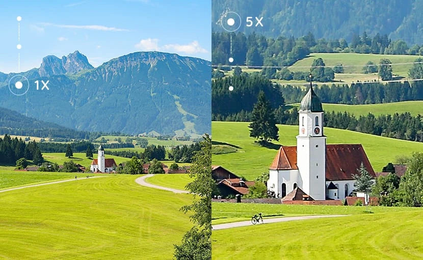 Its motorized varifocal lens provides a viewing angle of 27°~96°*, and its 5X optical zoom allows you to zoom in for astonishing details or zoom out for maximum coverage.
