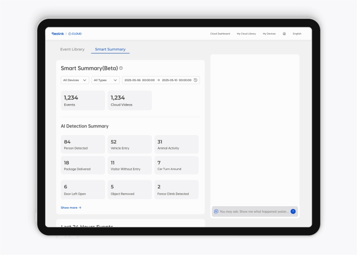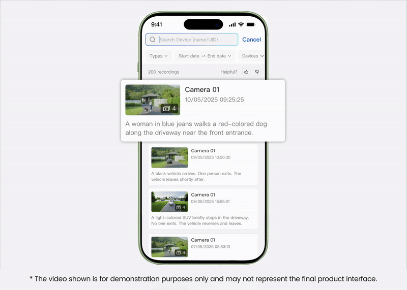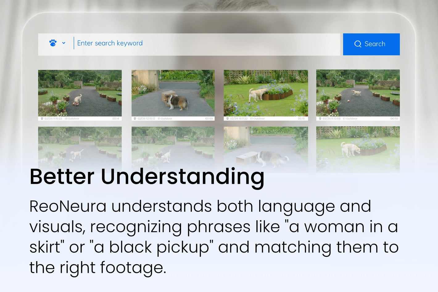 Search security footage like you search the web. Natural language queries (e.g., “a girl riding a bike”) deliver high-accuracy results in seconds, no more scrubbing through hours of footage.