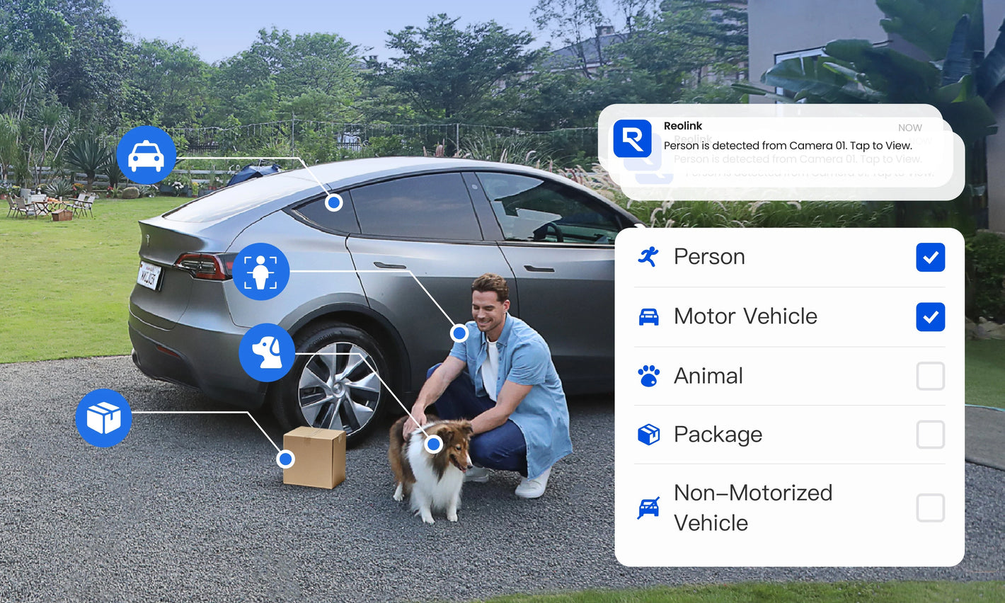 Detects people, vehicles, pets, packages, and more — with tailored alerts for what you care about.
