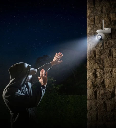 Recieve notifications through your smartphone and email, whilst bright spotlights and the loud siren ward away unwanted visitors.