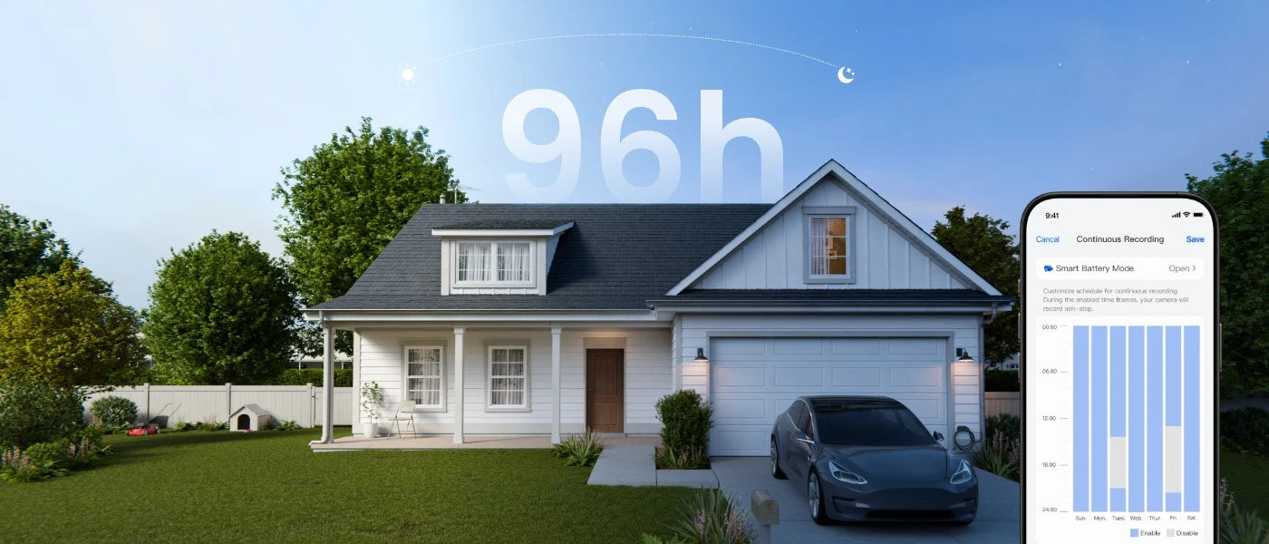 The high capacity battery powers the camera for 96 hours of continuous recording. Customize the recording schedule to your needs.